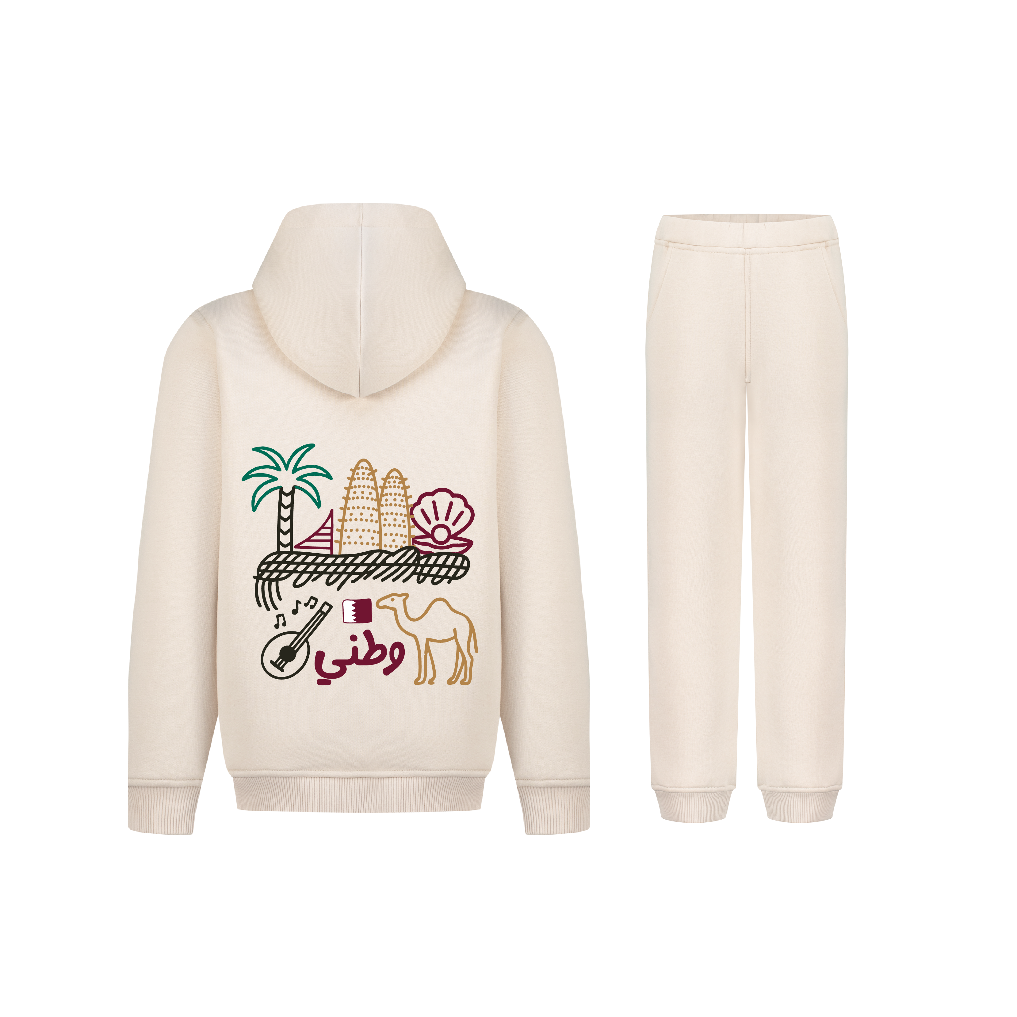ألبس أطفالك راحة وجودة تدومان طويلاً مع تعريفهم بـ قصة وطنهم من خلال طقم البدلة الرياضية لصغير المستكشف التاريخي. تم تصميم هذا الطقم خصيصًا للأطفال النشطين، وصُنع من نفس القماش عالي الجودة وفائق النعومة المستخدم في خط الملابس الخاص بالبالغين، مما يجعله لطيفًا على البشرة الحساسة ويوفّر راحة مثالية طوال اليوم. تتزيّن الكنزة (هودي) على المقدّمة برسمة ممتعة بعنوان "رحلة التقدّم الوطني"، لتمنح طفلك إطلالة مفعمة بالفخر والانتماء.